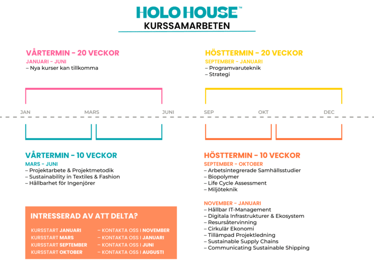 Vi har många kurssamarbeten med Chalmers, HB och HV inom en rad olika ämnesområde, allt från miljöledningssystem, till kartläggning av leverantörskedjor till LCA:er på produkter eller system. Ett enkelt sätt för er verksamhet att ta del av färsk kunskap och fler resurser!